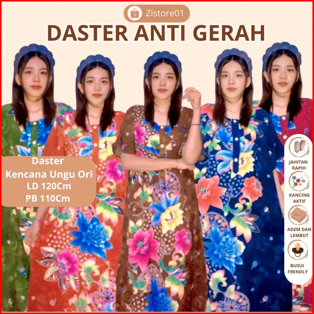 Daster Kencana Ungu Original Label Biru Oversize Lengan Pendek Wanita Kekinian Bahan Rayon Premium