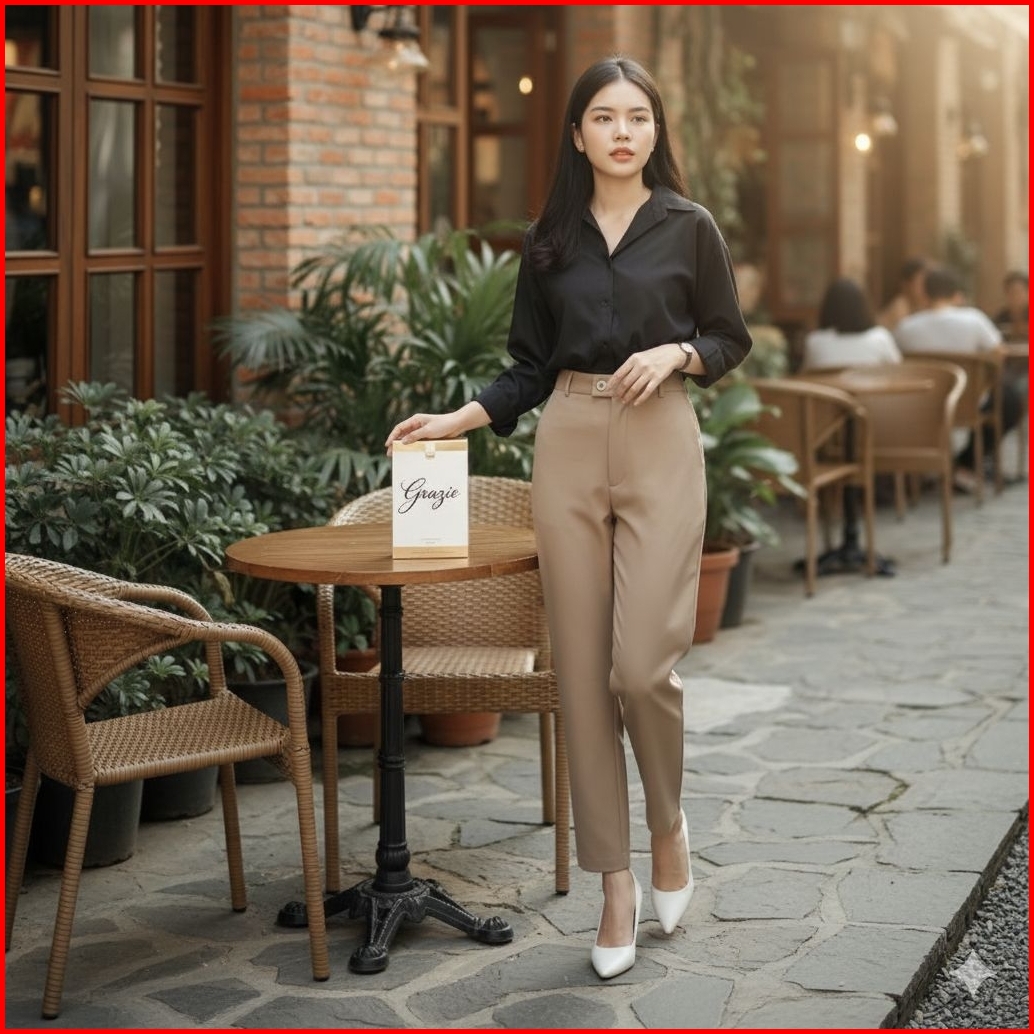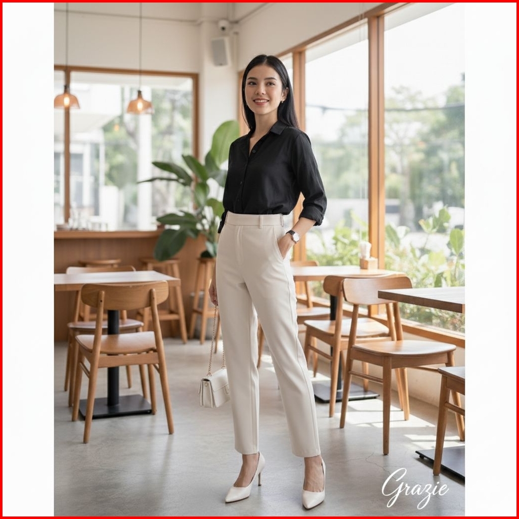 Alexa Pants - Celana Kerja Wanita Kantor Daily Simple Pinggang Karet Belakang M L Xl