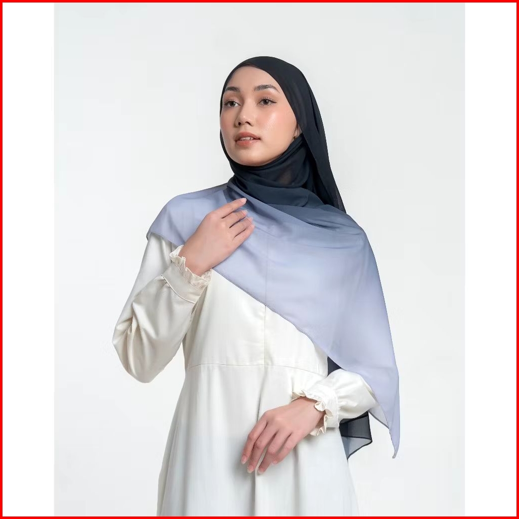 Pashmina Ombre Gradasi 2 Warna Ceruty Babydoll Premium