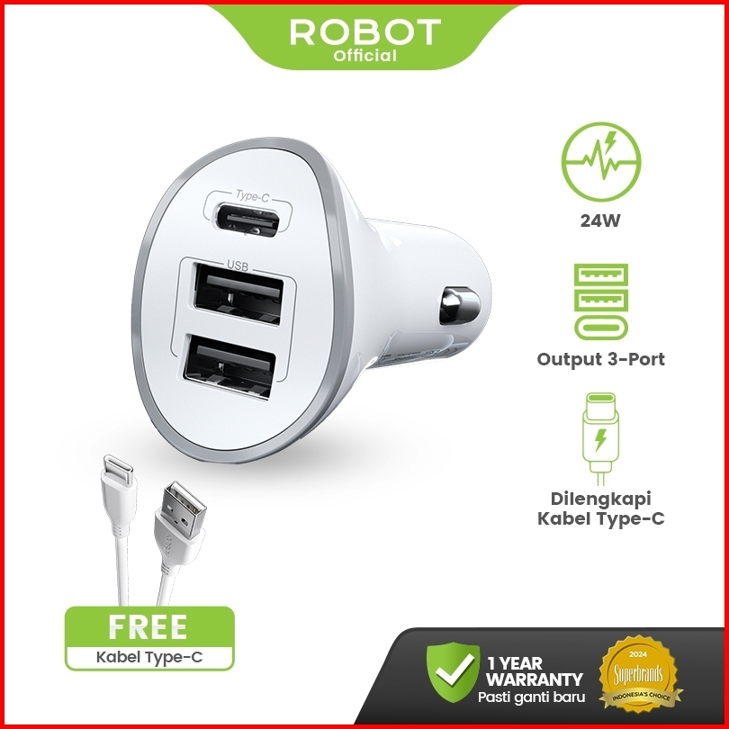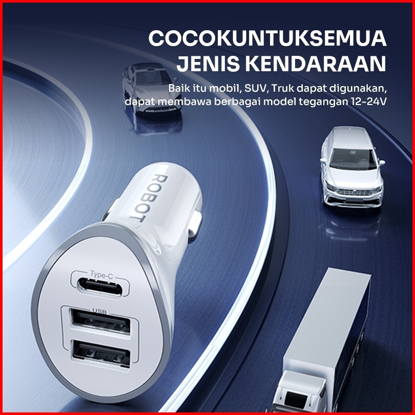 Robot Car Charger 3 Port Fast Charging Mobil Type C Micro Adapter Charger Mobil Rt-c08 Car Charger Colokan Mobil Usb Typ