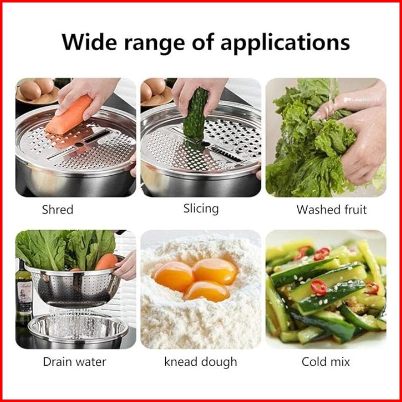 Sr Baskom Set 3 In 1 Dengan Parutan Tirisan Multifungsi Stainless Steel