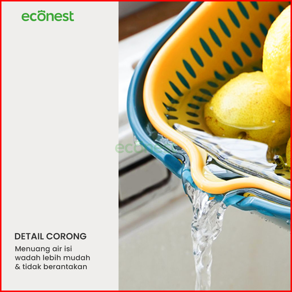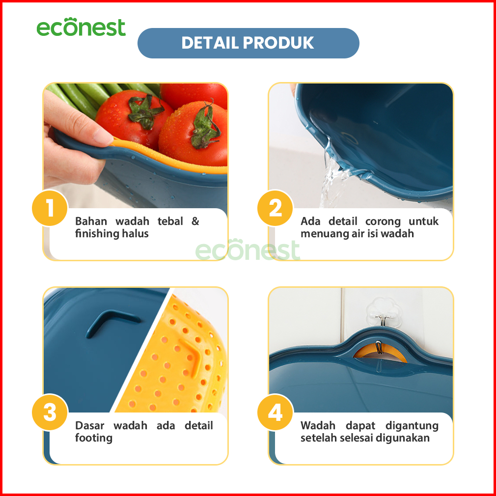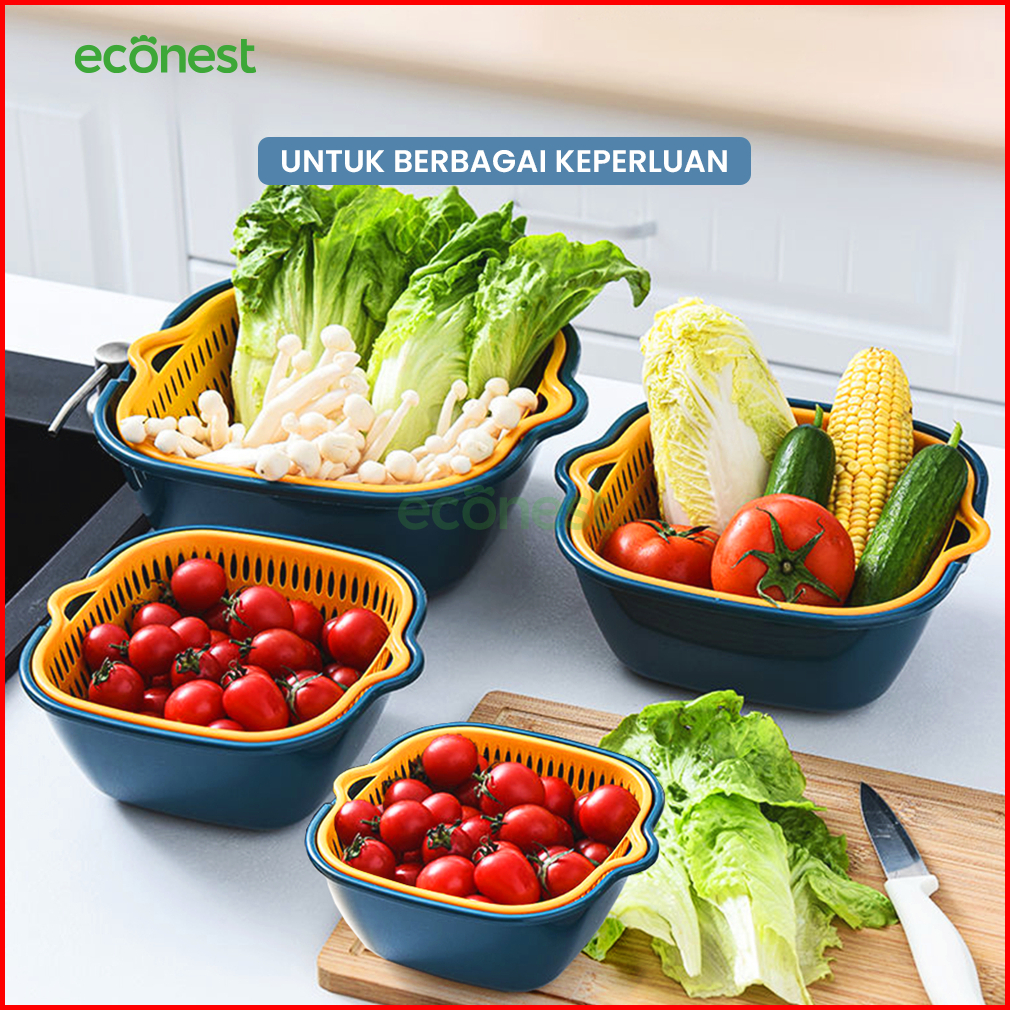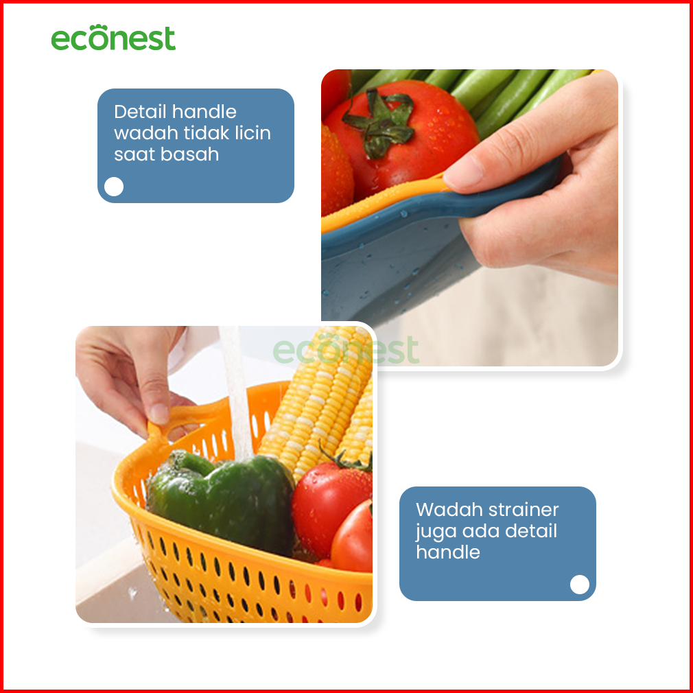 Econest Baskom Tirisan Set 8 Pcs Plastik Wadah Cuci Sayuran Buah Multifungsi Keranjang Saringan Set