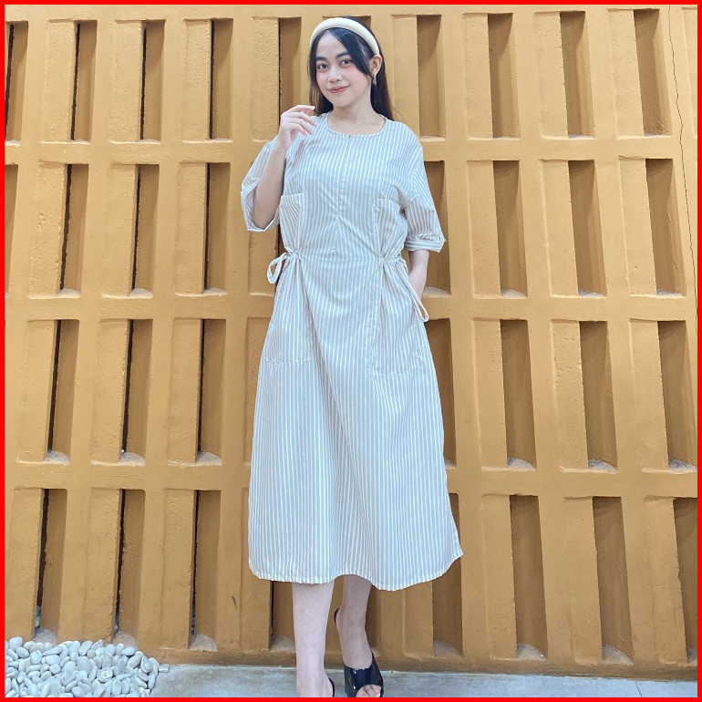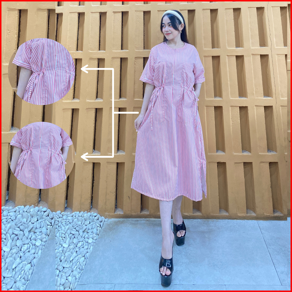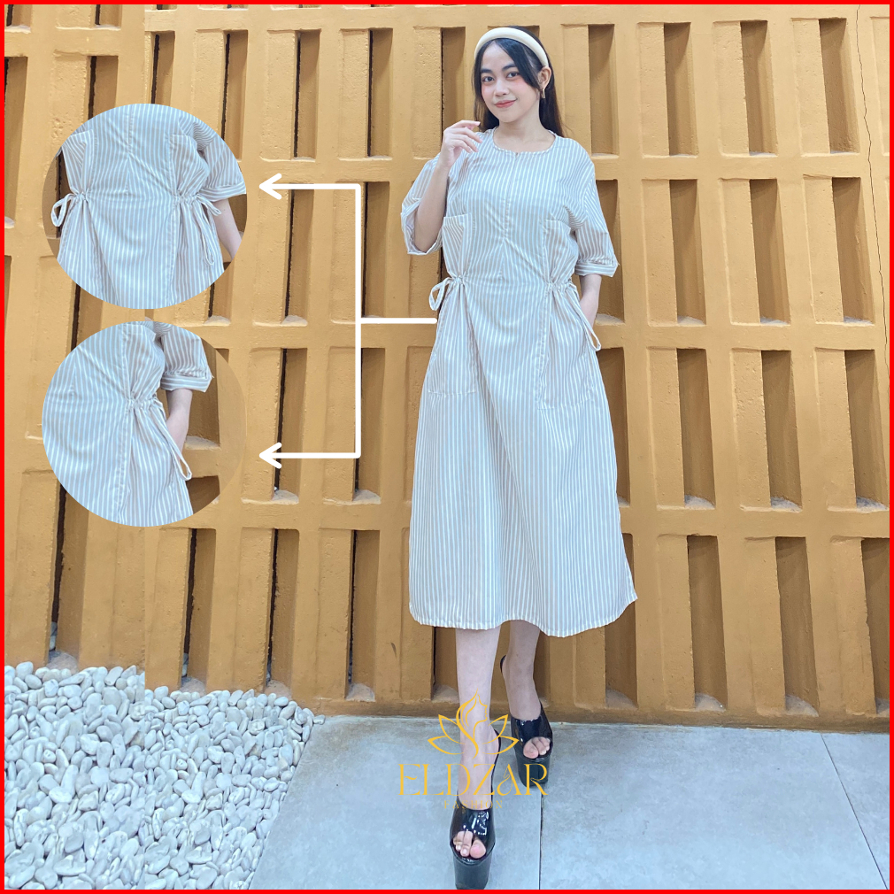 Eldzar Daster Cika Salur Tangan Pendek Saku Atas Saku Samping Tali Pinggang Cantik Bahan Katun Mikro
