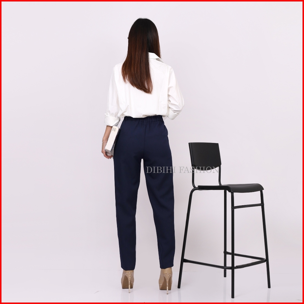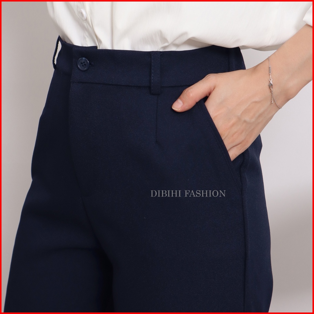 Dibihi Celana Kerja Formal Kantor Wanita Pinggang Highwaist Karet Sisi Belakang Bahan Import