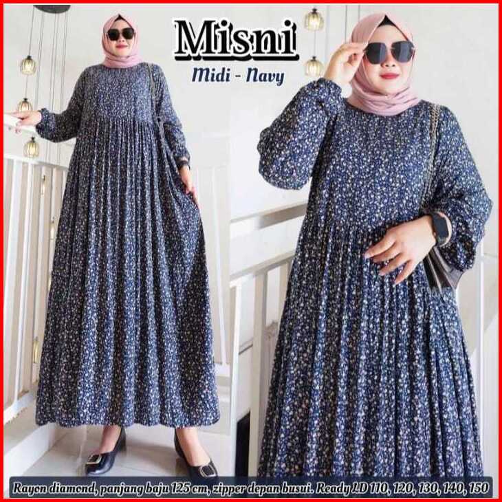 Midi Dress Misni Rayon Premium Jumbo Busui Gamis Motif Terlaris
