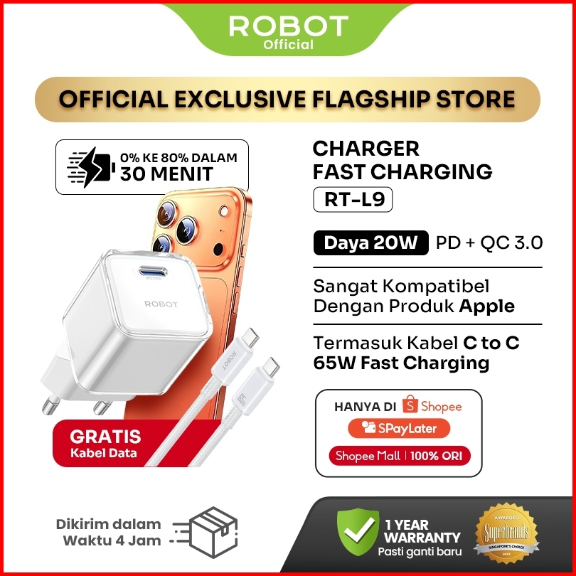 Robot Charger Kompatibel Untuk Fast Charging Iphone15-17 Android Gan 20w Free Kabel C To C Rt-l9 Original - Garansi 1 Ta
