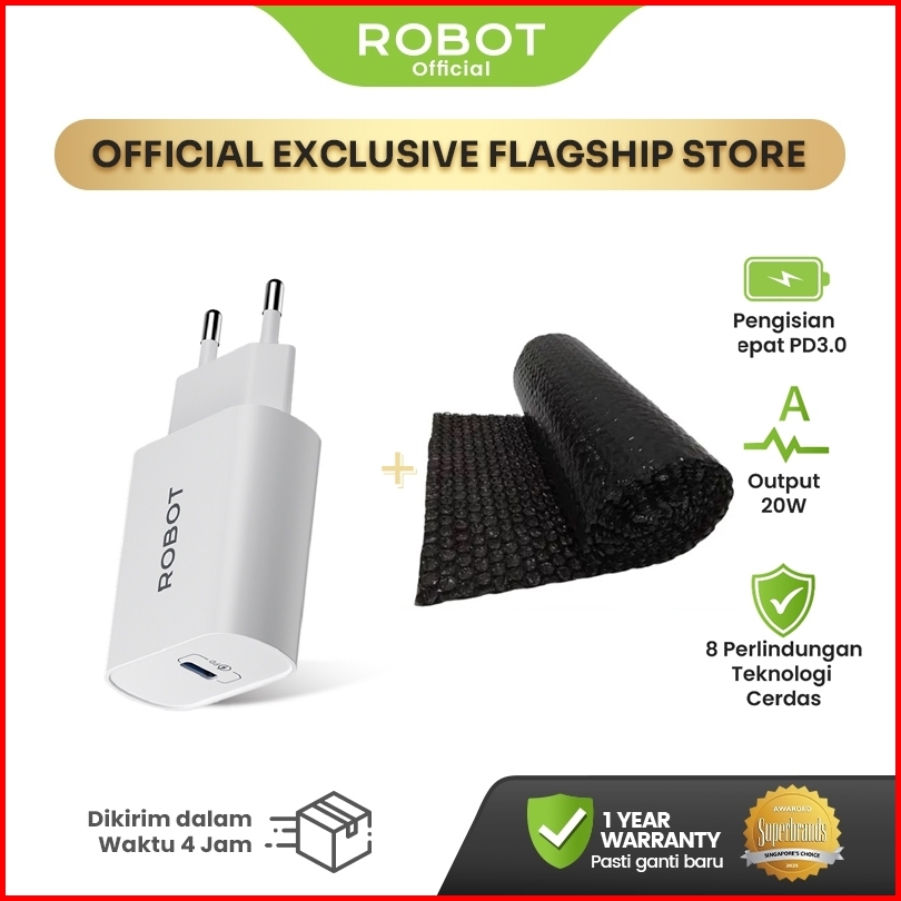 Robot Adaptor Kepala Charger Iphone 17 16 15 14 13 Samsung Type C Pd 20w Fast Charging Rt-l6 Original Garansi 1 Tahun