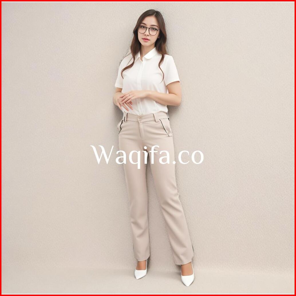 Celana Kerja Kantor Reguler Formal Cream Pinggang Kancing Resleting Wanita