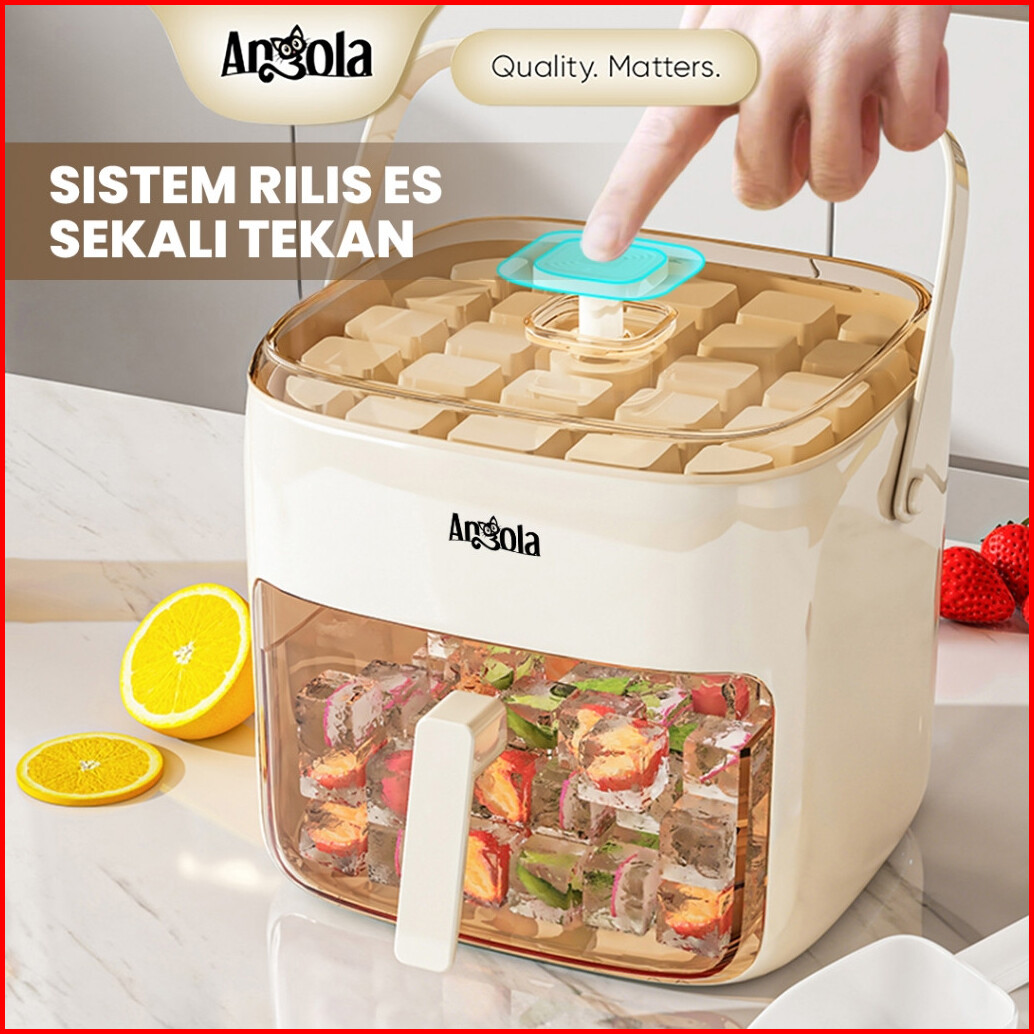 Spesial Angola Cetakan Es Batu Sekali Tekan E52 Ice Cube Maker Ice Storage Box Cetakan Wadah Es 2in1