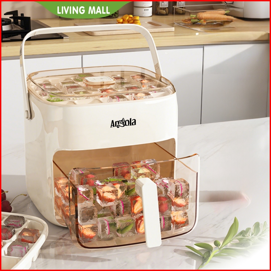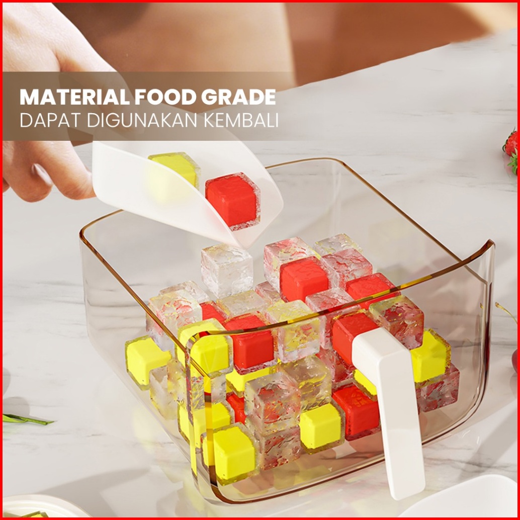 Living Mall Cetakan Es Batu Sekali Tekan E52 Ice Cube Maker Ice Storage Box Cetakan Wadah Es 2in1