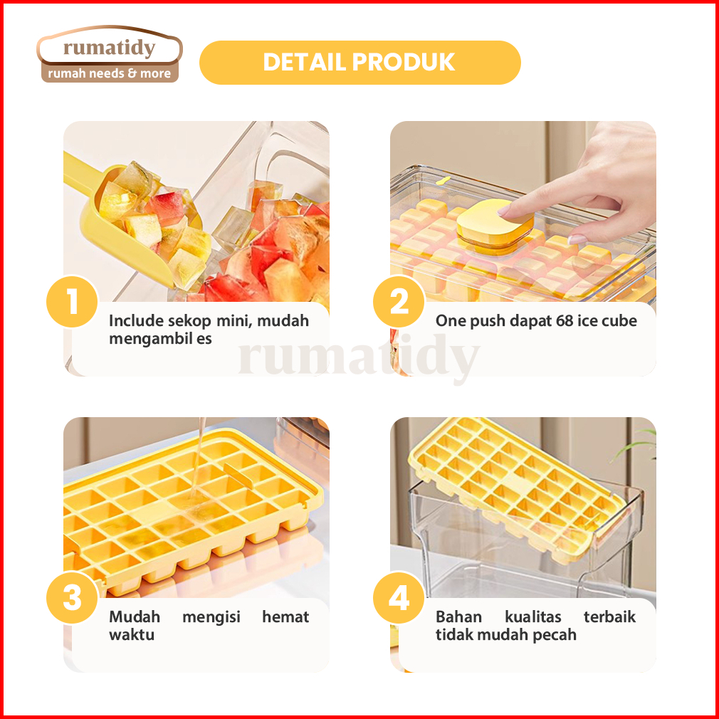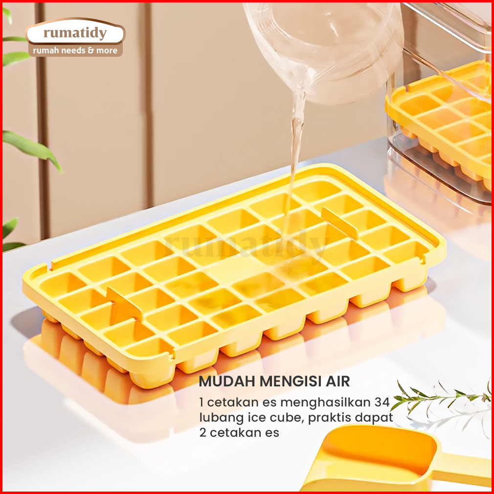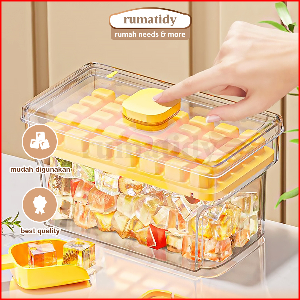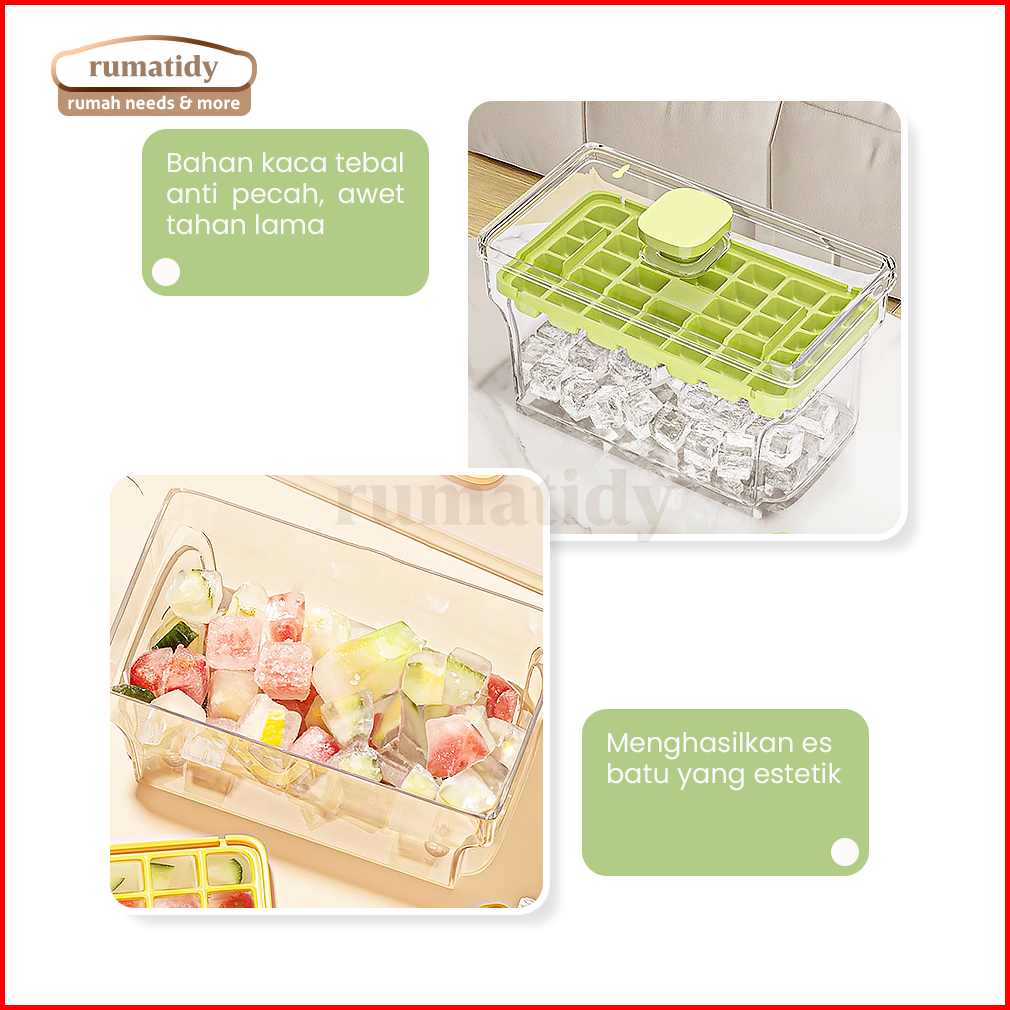 Rumatidy - Cetakan Es Batu Sekali Tekan 32 Grid Food Grade Silicone Ice Tray Maker Press Handle