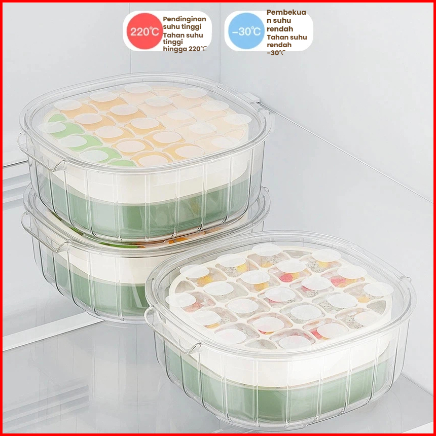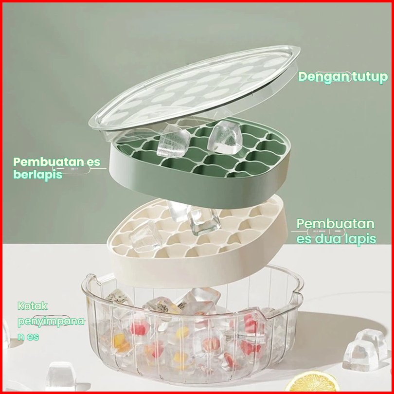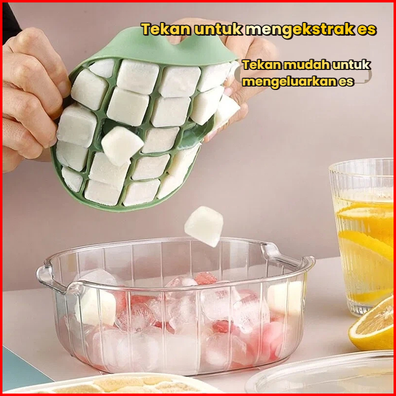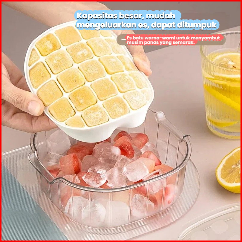 Pine Oak Cetakan Es Batu 25 Grid 2 Tray Wadah Transparan Cetakan Es Batu Kotak