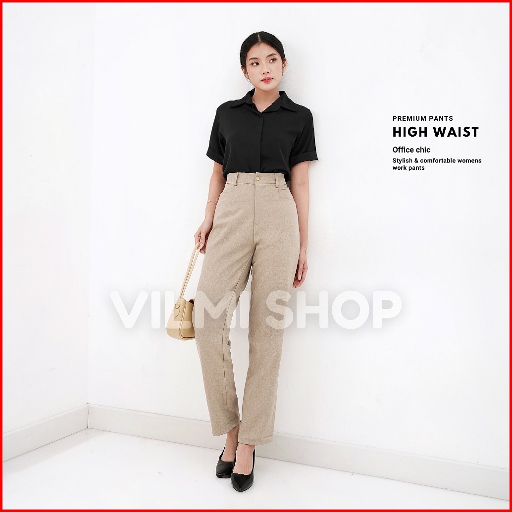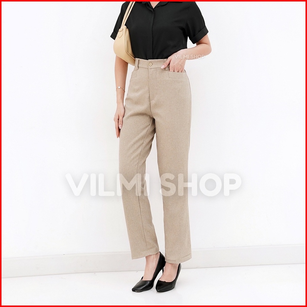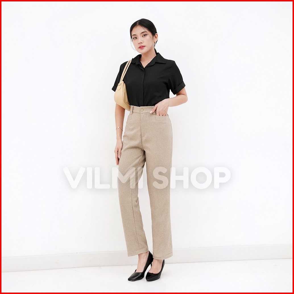 Celana Kerja Wanita Highwaist Celana Kantor Formal Bahan Stretch Premium Pinggang Karet Samping