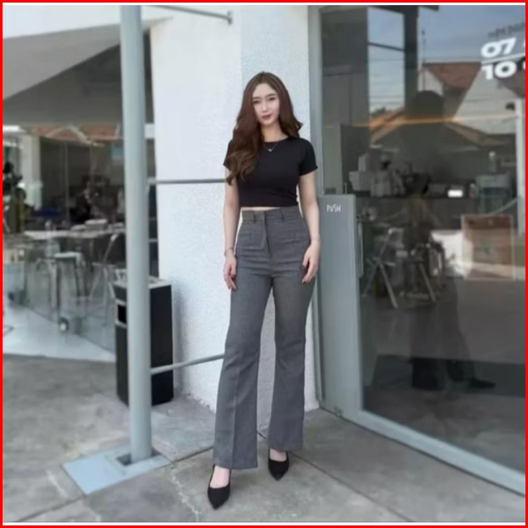 Kylie Cutbray Pants Highwaist Pants Celana Flare Pants Wanita Semi Woll Premium