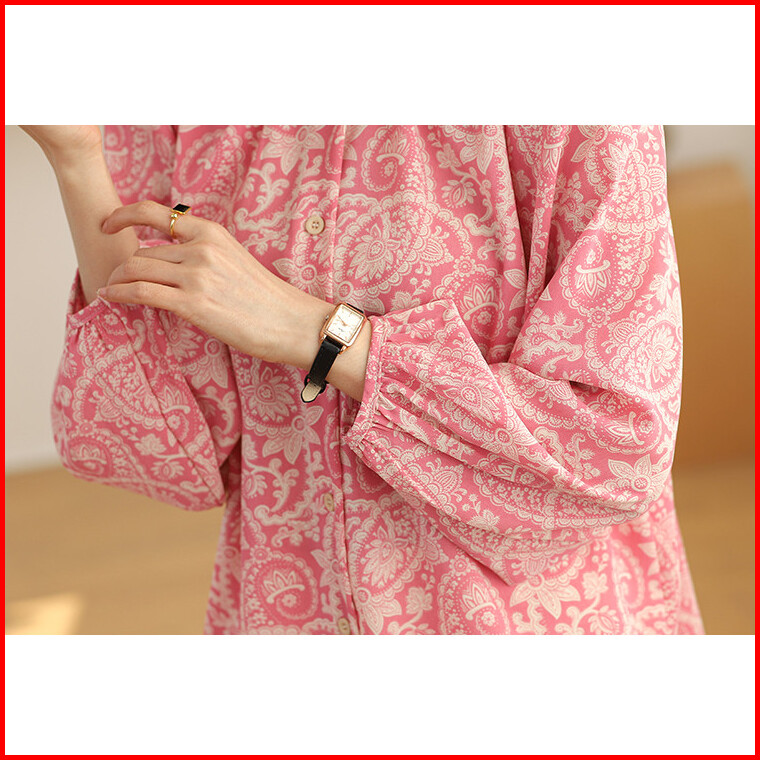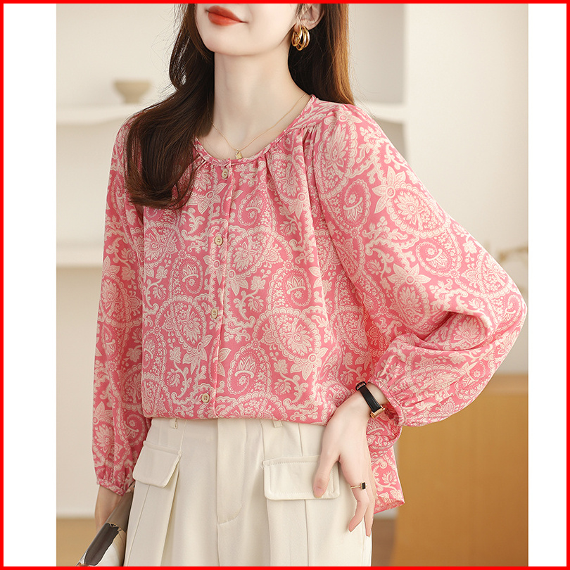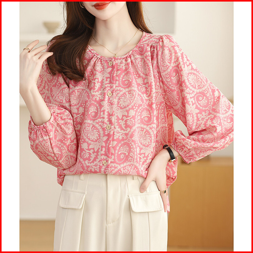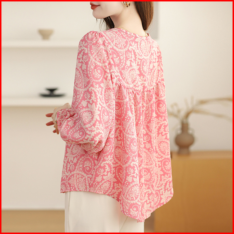 Tianshun Gentle Pink Paisley Women S Printed Wear Long Sleeve Fashion Korean Style Chiffon Loose Top