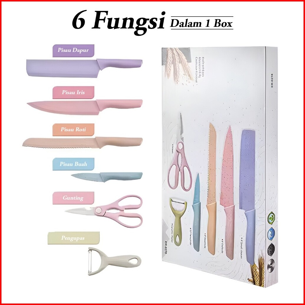 6 Set Pisau Dapur Grosir Terlengkap Stainless Steel Bahan Premium Anti Lengket Serbaguna Termurah