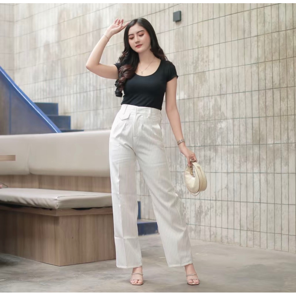 Oro Pant Stripe Bangkok - Celana Anti Kusut - Celana Panjang Korean Style - Celana Panjang Highwaish