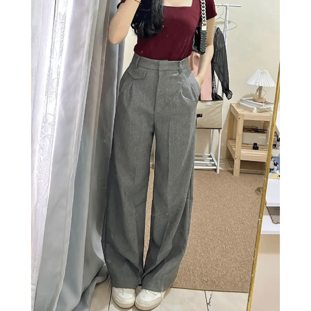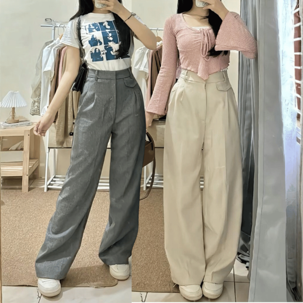 Oro Pants High Waist Celana Kerja Harian Wanita Kulot Highwaist Loose Bahan Semiwool Premium