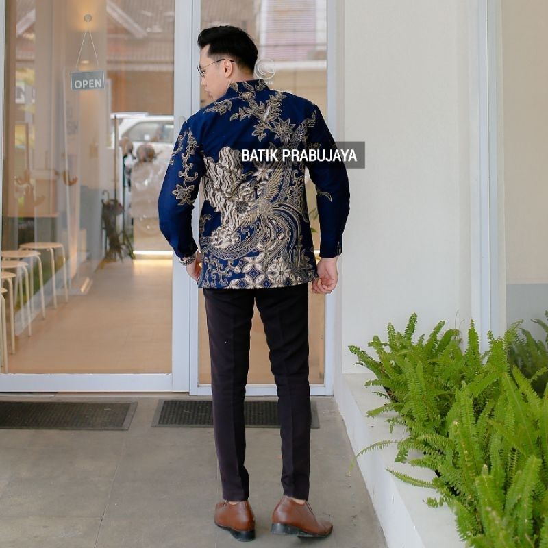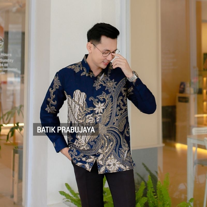 Seling Navy Kemeja Batik Pria Lengan Panjang Modern Premium Jumbo Slim Fit - Baju Batik Pria Cowok Kondangan Pesta Serag