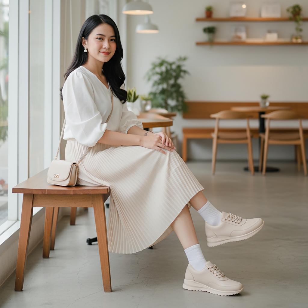 ELIRA Marta Cream Sepatu Sneakers Kasual Wanita White Black Casual Shoes Women