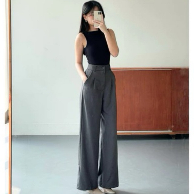 Viona Pants - Celana Highwaist Trousers Loose Pants - Celana Kulot Wanita Anti Kusut - Celana Kerja Kantor Formal - Cull