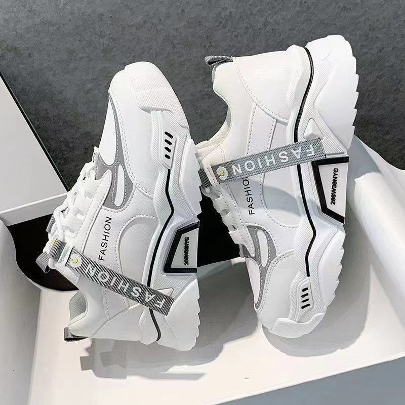 KOII Sepatu Olahraga Sneakers Wanita Korea Putih Hitam Kasual Sport Shoes White Black rabels Fashion Platform Trendy