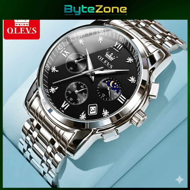 [Mall] OLEVS 2858 |Jam Tangan Pria Original Stainless Steel, Anti Air, Chronograph Aktif, Luminous, Kalender Analog✨