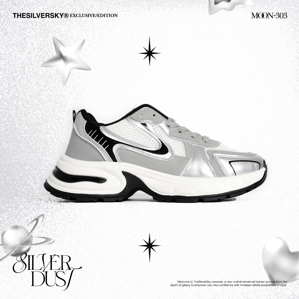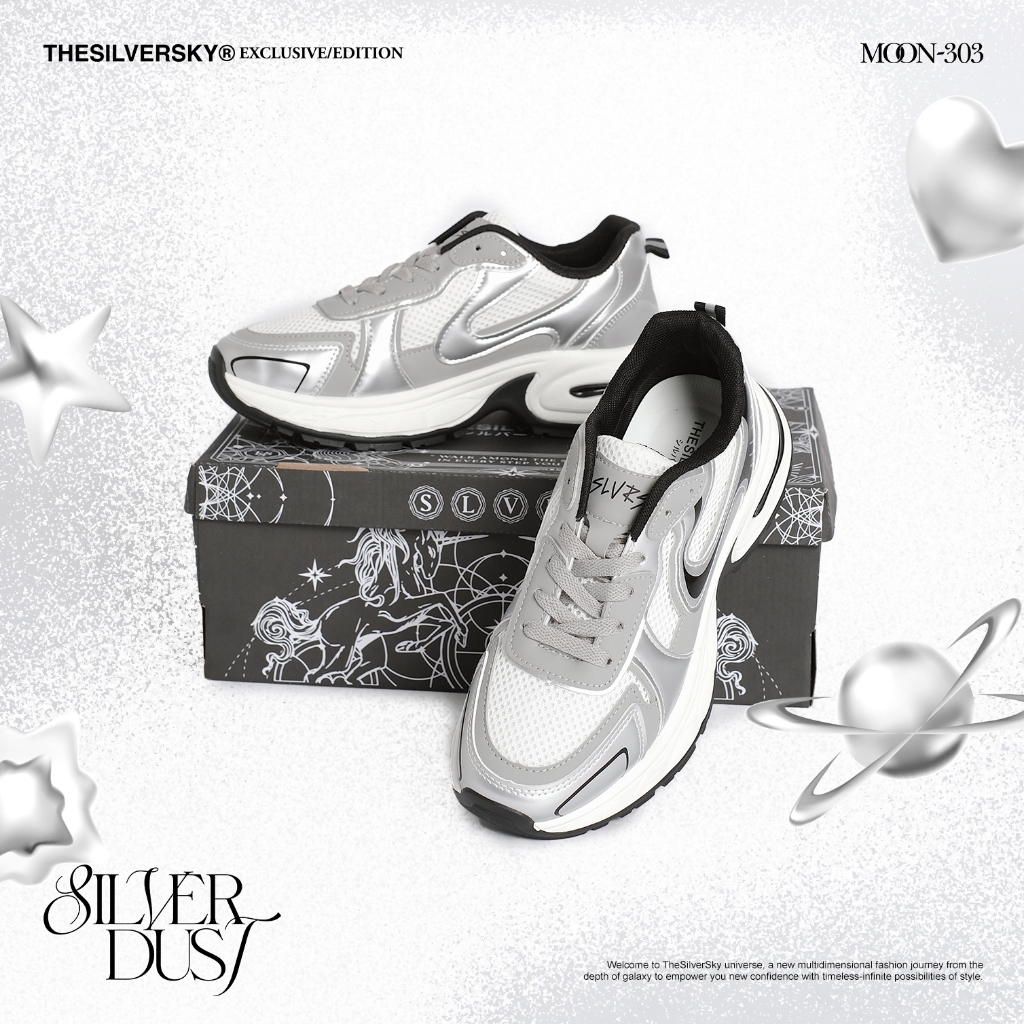 Thesilversky MOON303 Silver Dust Sneakers Premium Sepatu Y2K Wanita Sport Shoes Casual Abu Putih