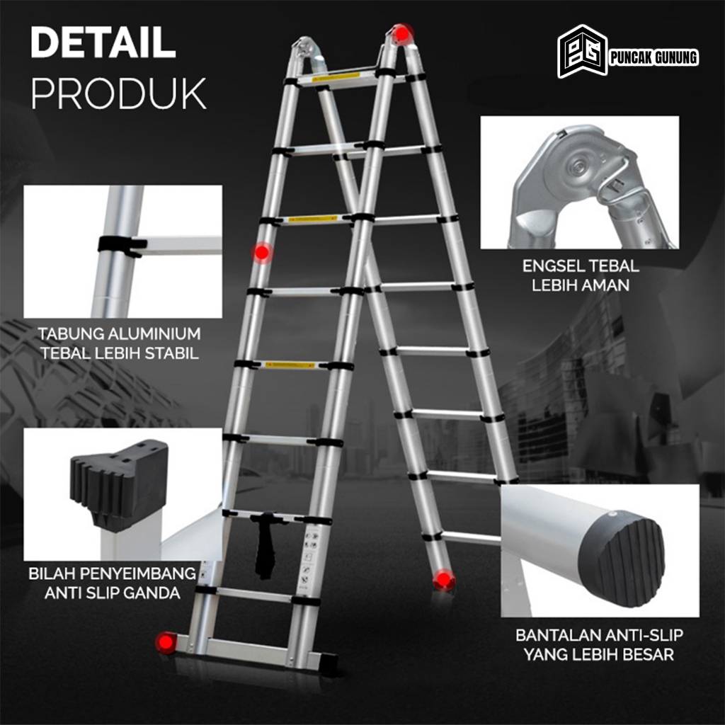 Tangga Lipat Aluminium Teleskopik Ganda 4.4M l 5 Meter Double Ladder Portable Kokoh - T2A1/T2B1/T2C1