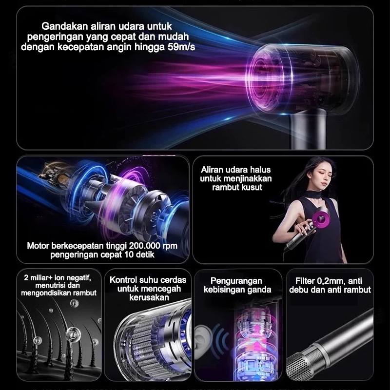 GOBOOX Hair Dryer Profesional Negative Ion Pengering Rambut Portable Ultra High Speed Blower Strong Wind | Cepat kering