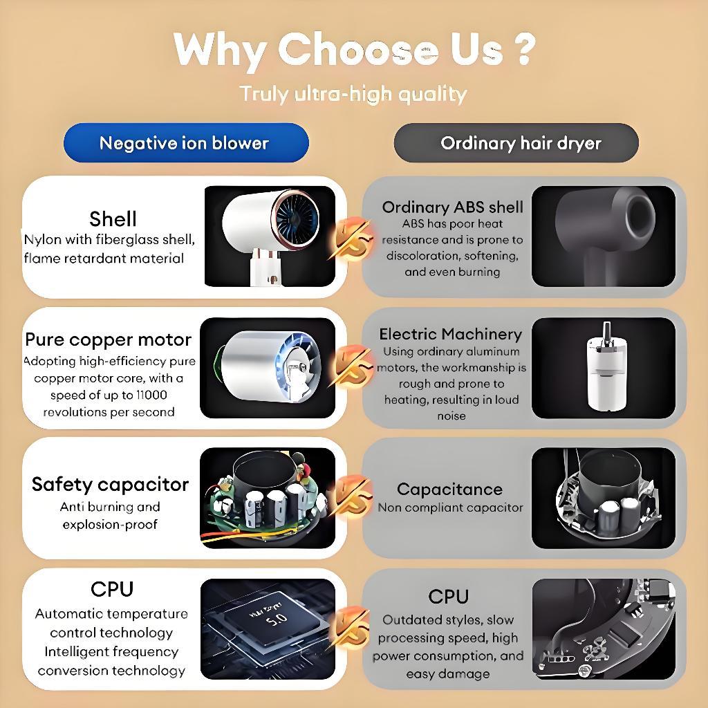 【KIRIM HARI INI】Hair Dryer Pengering Rambut 2000W Professional - Ion Negatif 100 Juta, Teknologi Turbo Engine, 3 Level S