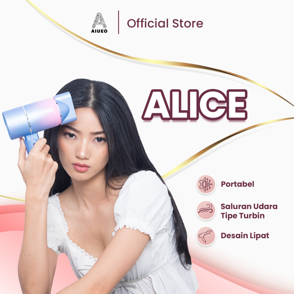 AIUEO Hairdryer Rambut Alice Pengering Rambut Travel Daya Rendah- Warna Pink dan Ungu