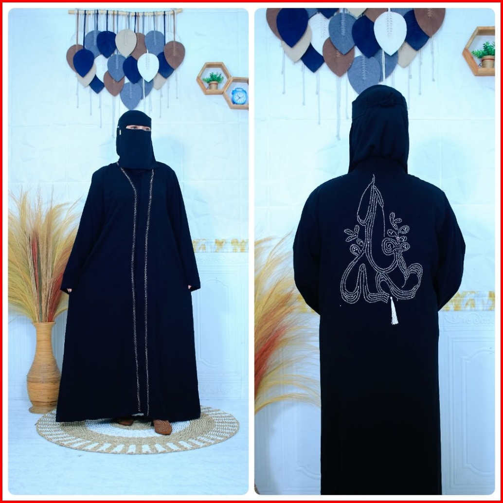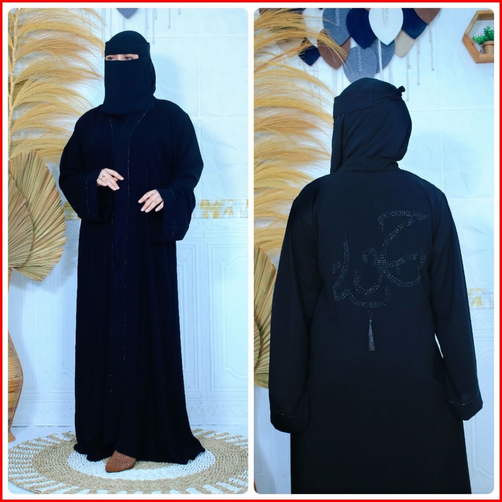 Abaya Arab Viral Helwa Swarovski Outer Gamis Dress Muslimah Fashion Dubai Model Kaligrafi Tassel Raya Outer Couple Ibu D