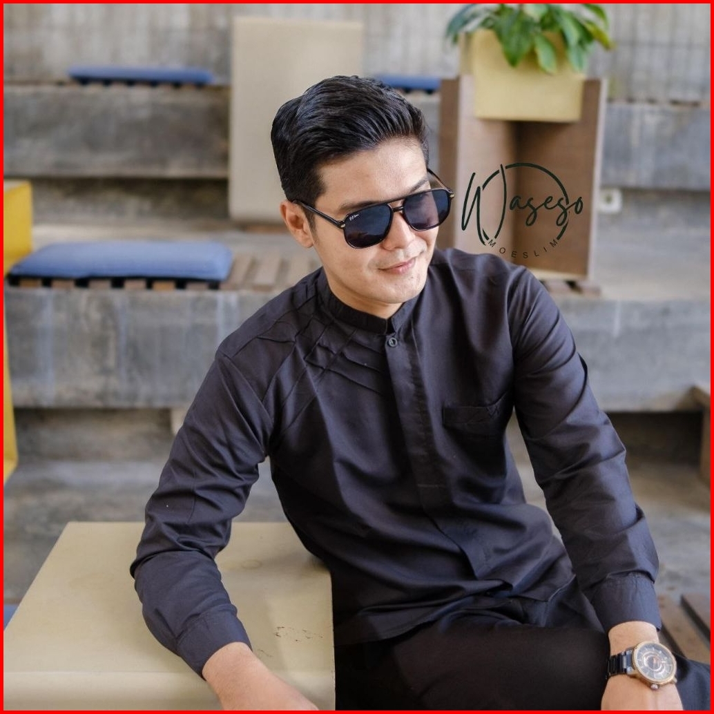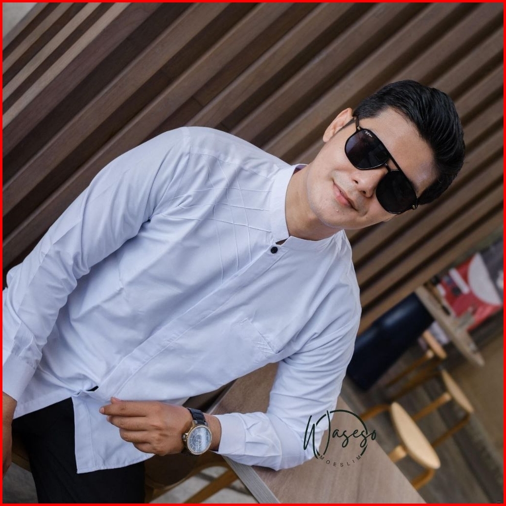 Baju Koko Pria Dewasa Polos Lengan Panjang Motif Jaring Timbul Terbaru