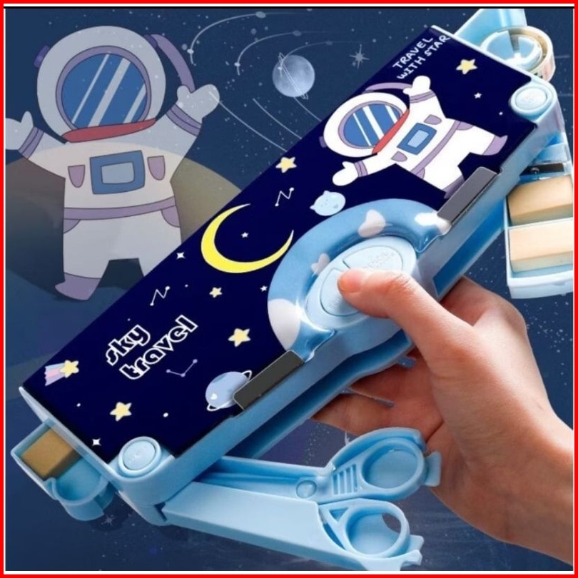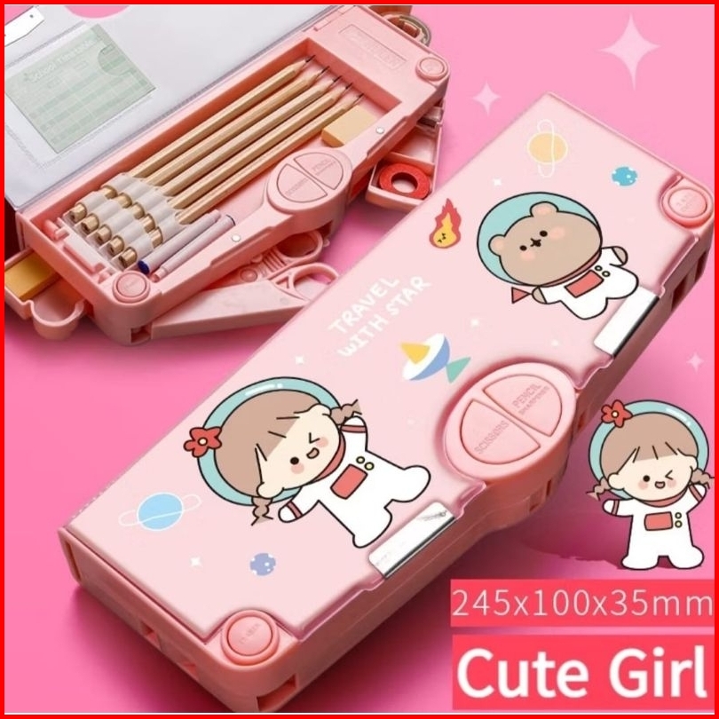 Kotak Pensil Pola Kartun Tempat Pensil Lapisan Ganda Dan Tunggal Dengan Rautan Multifungsi