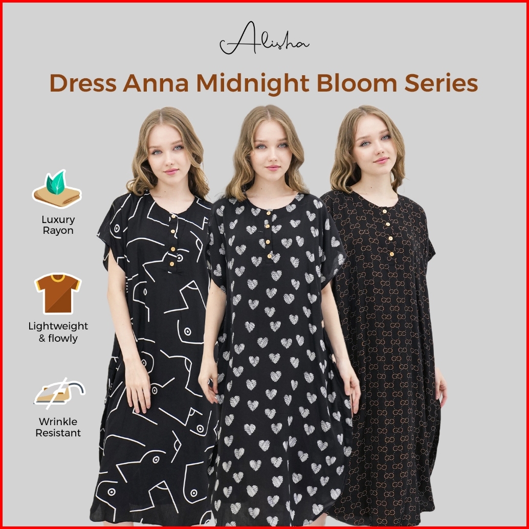 Alisha Daily Model Anna Midnight Bloom Daster Baju Tidur Busui Bumil Kekinian Lengan Pendek