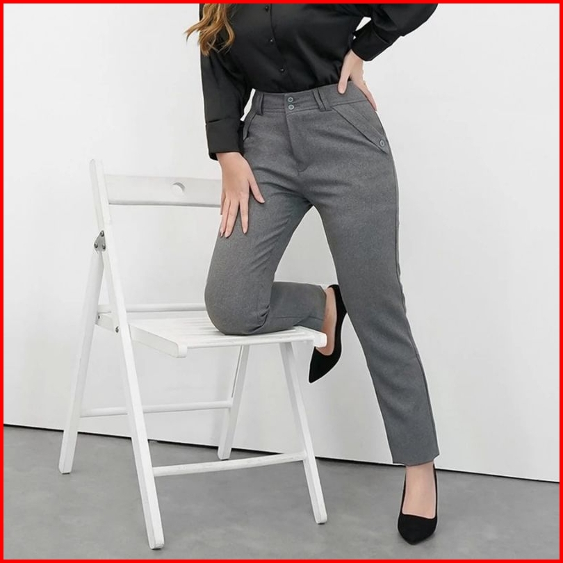 Promo Celana Bahan Formal Kantor Wanita Kerja Kain Gracela Pinggang Kancing Resleting Slimfit Hight Waist Jumbo Kualitas