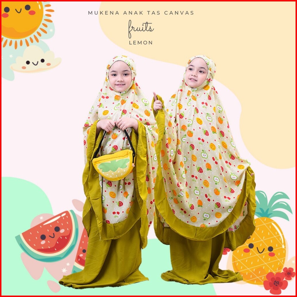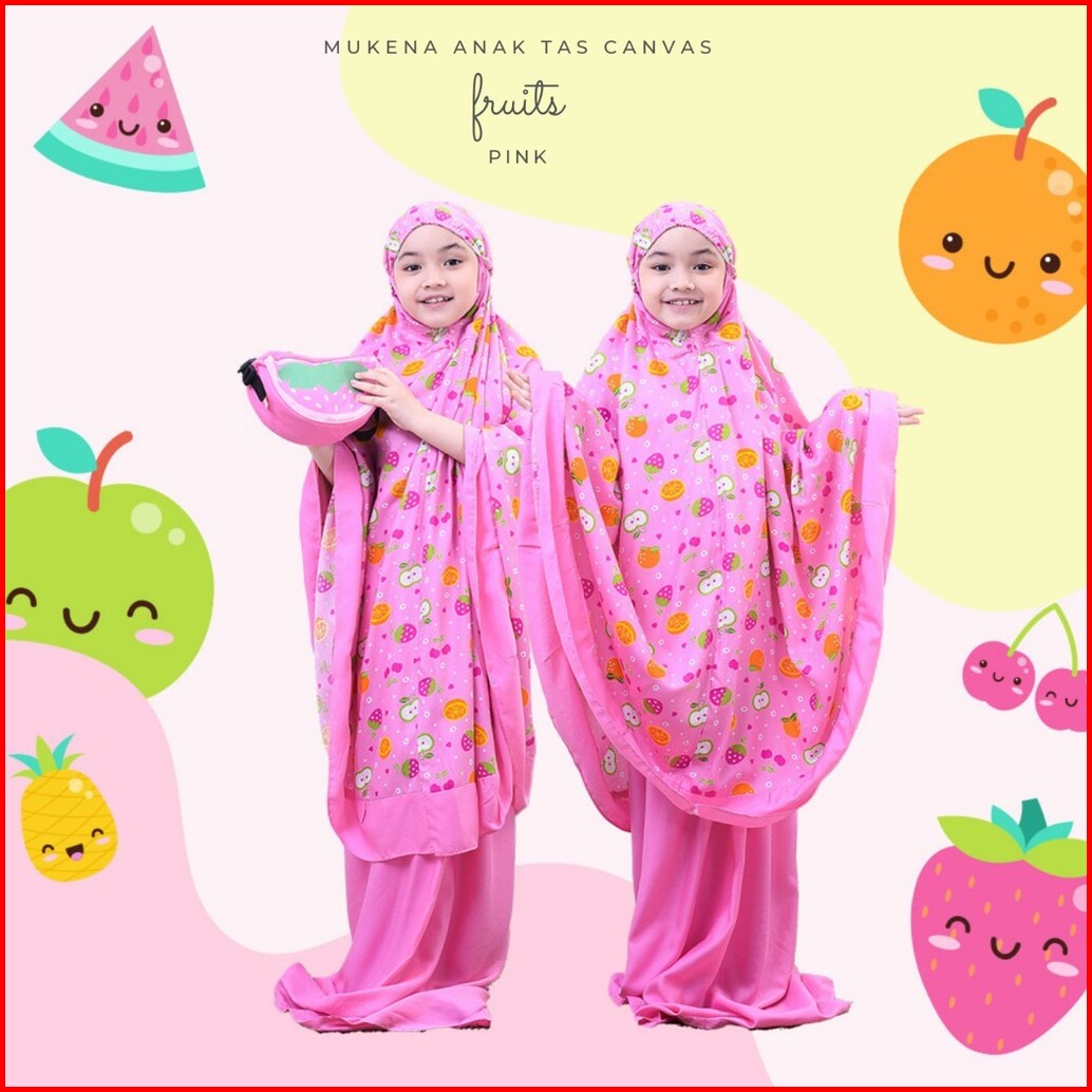 Set Mukenah Anak-anak 2 3 4 5 6 7 8 Tahun Motif Fruits