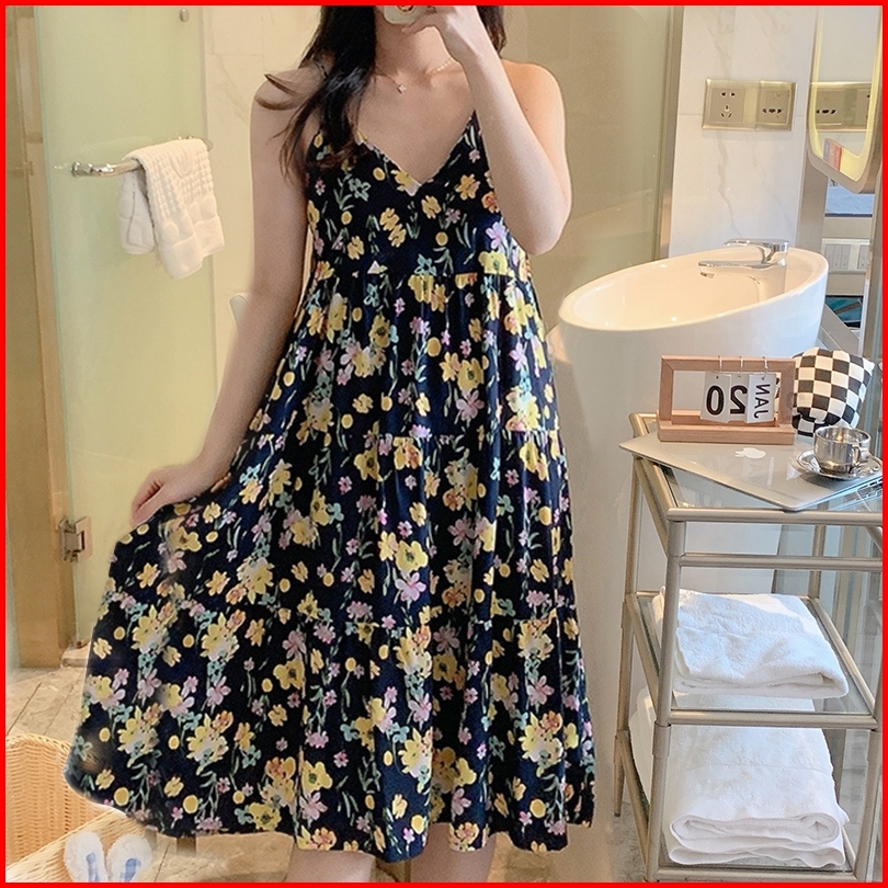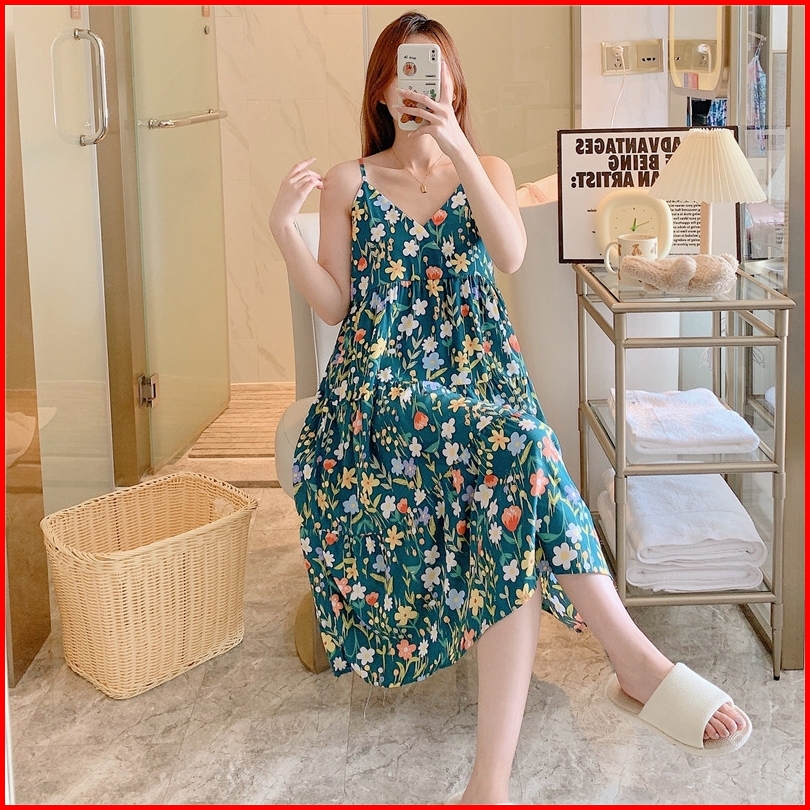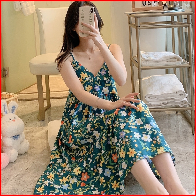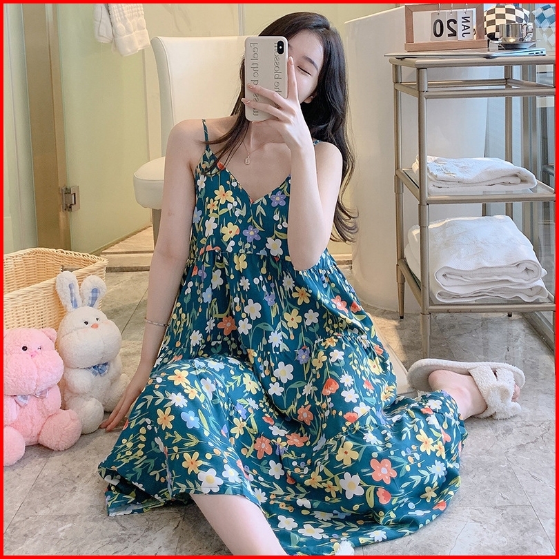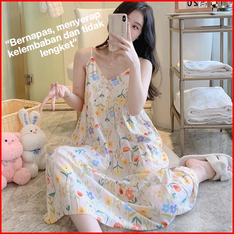 Gadis Kitty Baju Tidur Longgar Panjang Wanita Aun Tidur Rumah Manis Motif Bunga Kecil
