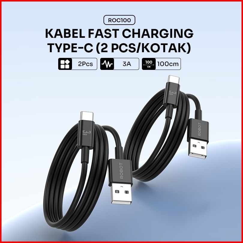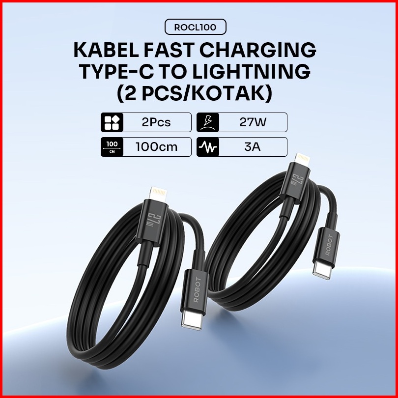 Robot Original Kabel Data 2pcs Type-c To Lightning Type-c Micro 3a 1m Fast Charging - Kompatibel Iphone Samsung Xiaomi -