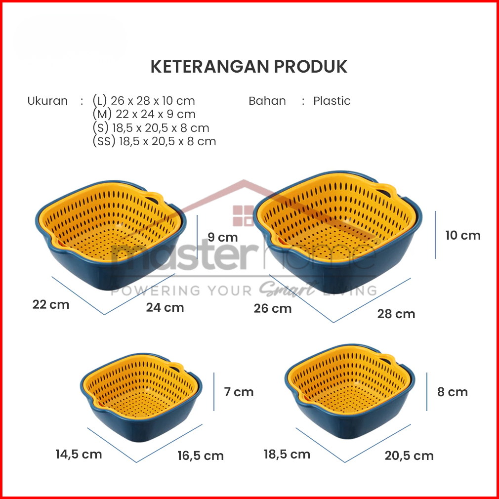 Masterhome Baskom Sayur Plastik 8in1 Serbaguna Keranjang Saringan Cuci Buah Multifungsi Bebas Bpa
