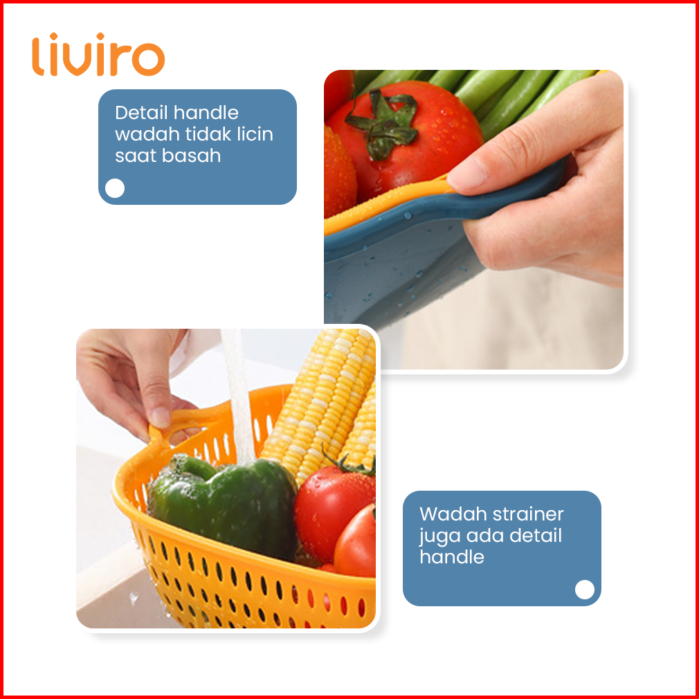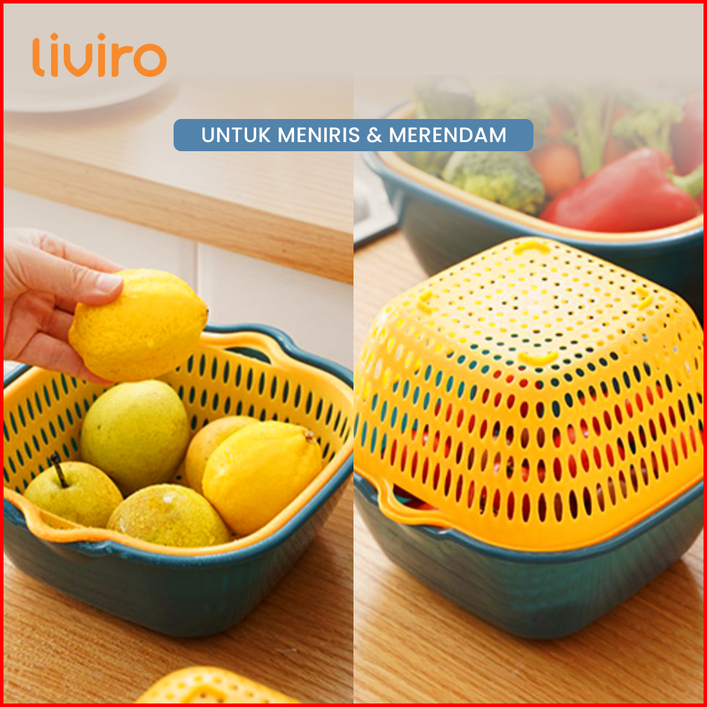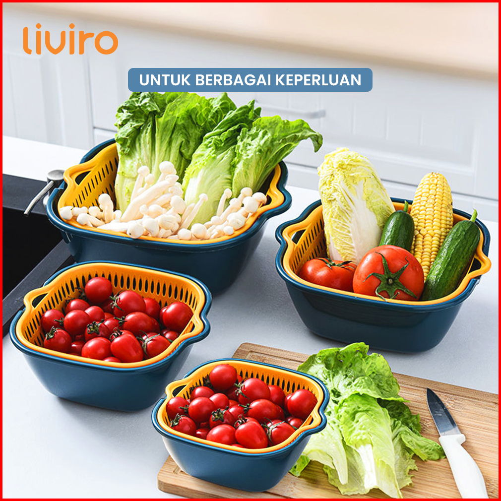 Liviro Set Baskom Plastik 8in1 Serbaguna Saringan Multifungsi Cuci Sayur Buah Bpa Free Premium