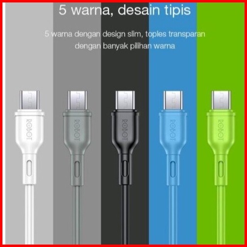 Kabel Data Robot 1toples 20pcs Panjang100cm Fast Charging 2.4a Garansi Original