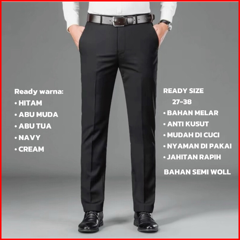 Dawsho - Celana Formal Pria Slim Fit Bahan Wol Street