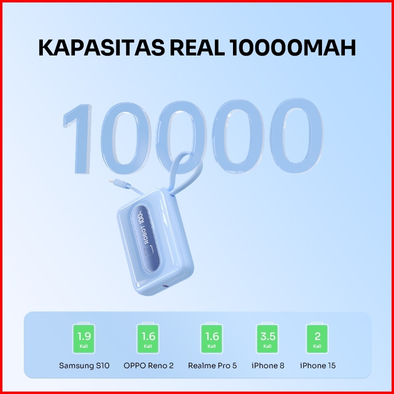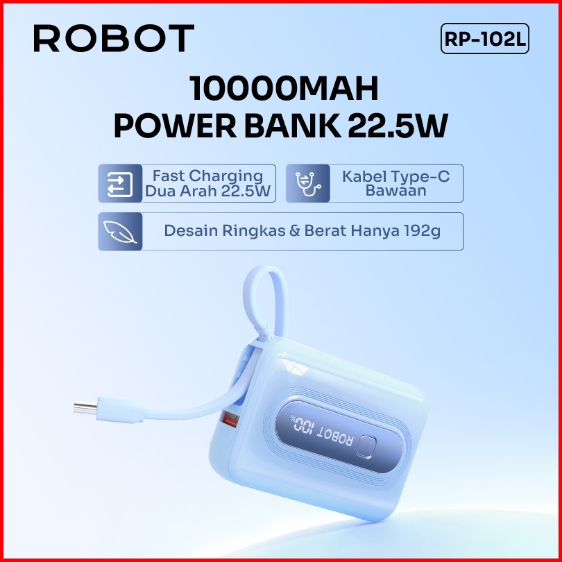 Special Launch Robot Powerbank Fast Charging 10000mah Type-c Cable Pengisian Cepat 22.5w Led Display Power Bank Rp-102l