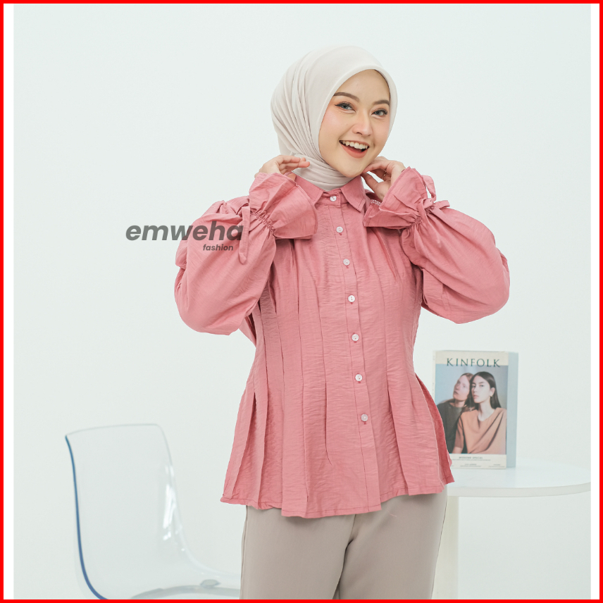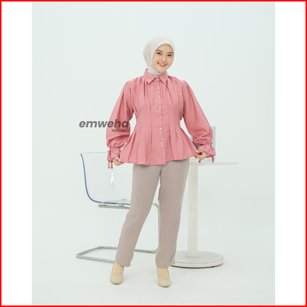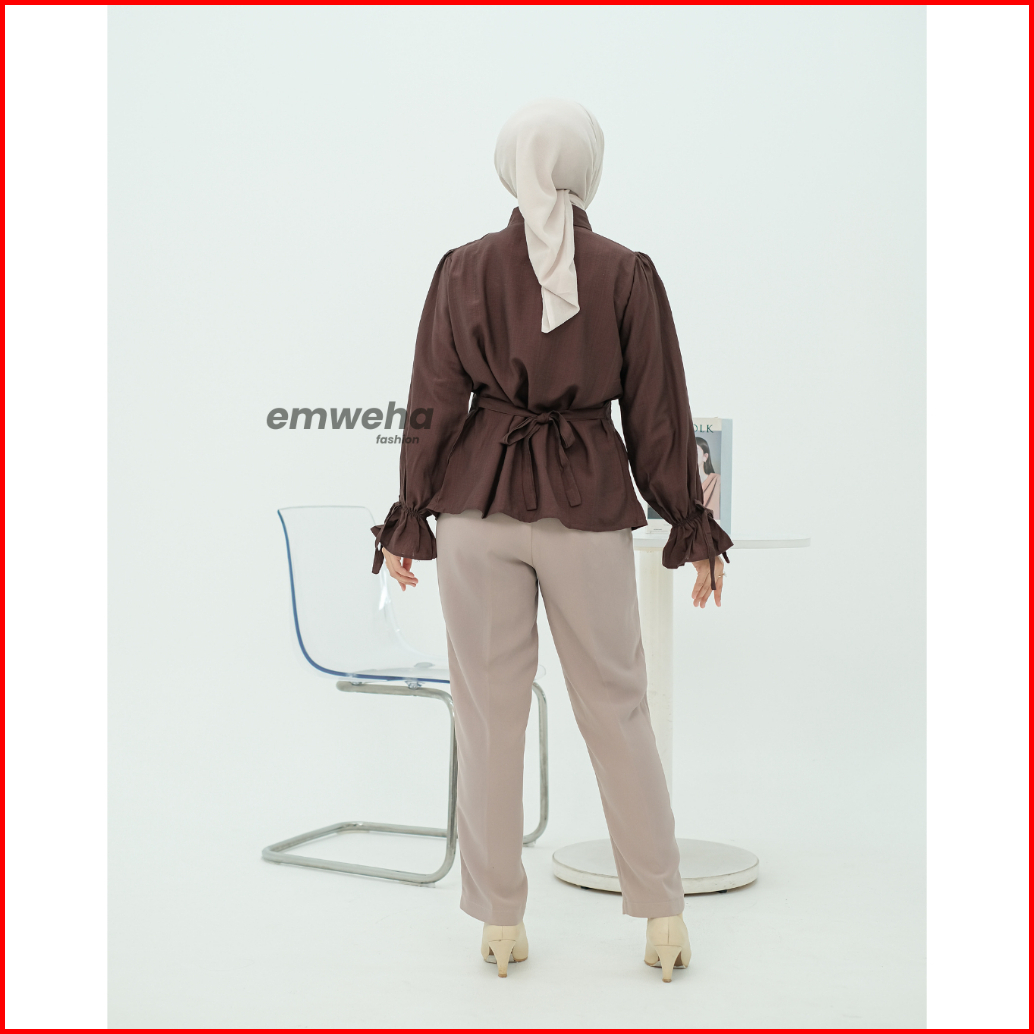 Emweha Viola Atasan Linen Wanita Peplum Blouse Fitted Body Lengan Panjang Kekinian Korean Style