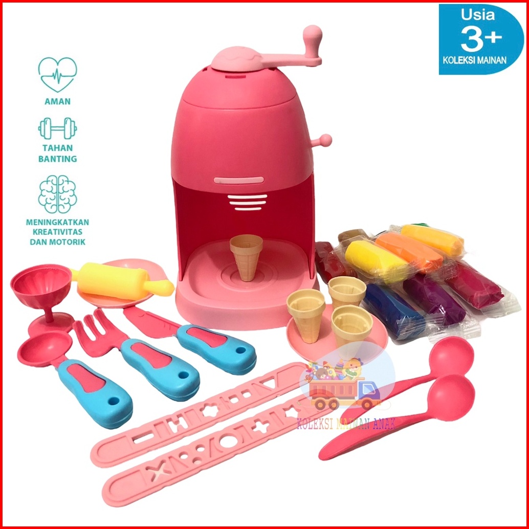 Mainan Edukasi Anak Mesin Lilin Cetakan Es Krim Play Fun Doh Set Machine Color Ice Cream