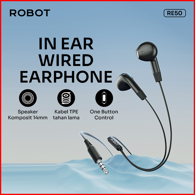 Robot Wired Headset Earphone Inear Headset Musik Headset Kabel Telpon Re50 Android Iphone Original - Garansi 1 Tahun
