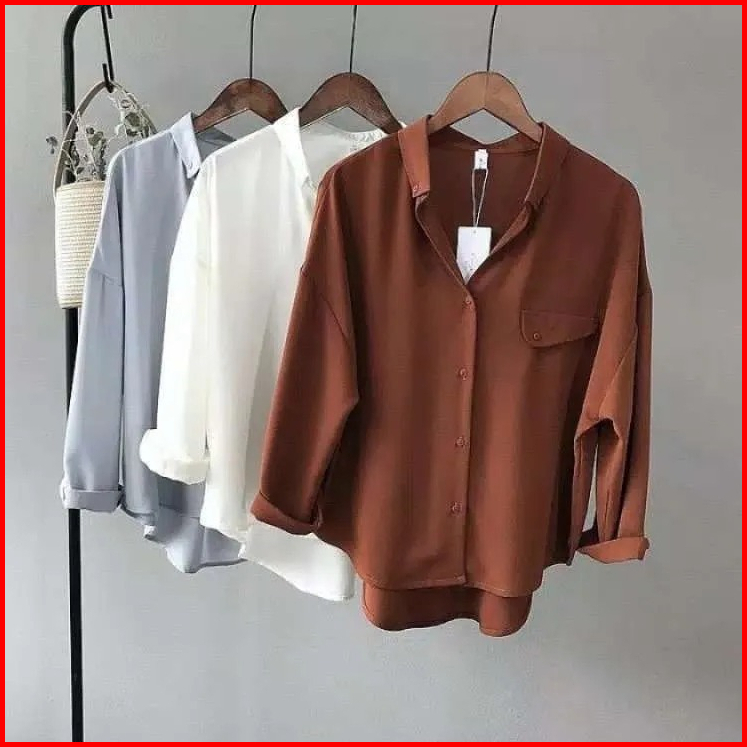 Vallina - Audi Shirt Basic Kemeja Atasan Blouse Wanita Polos Kerja Kantor Korean Style