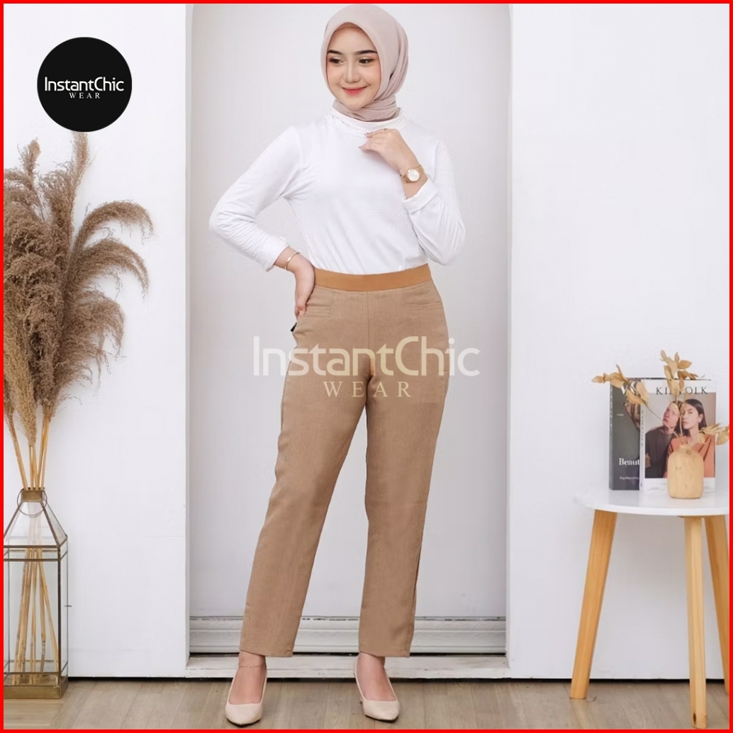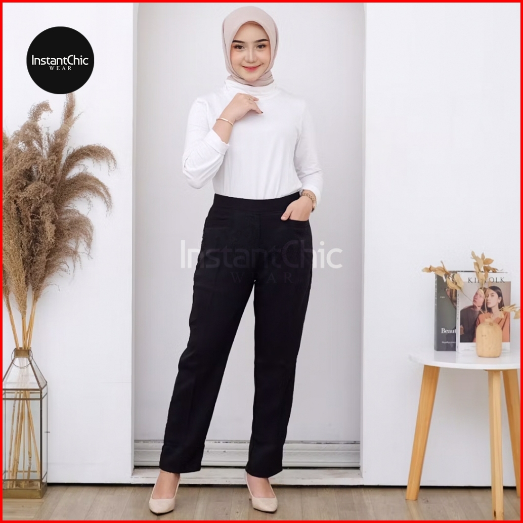 Celana Kerja Kantor Wanita Pinggang Karet Rib Formal Premium Nyaman Modis Fleksibel